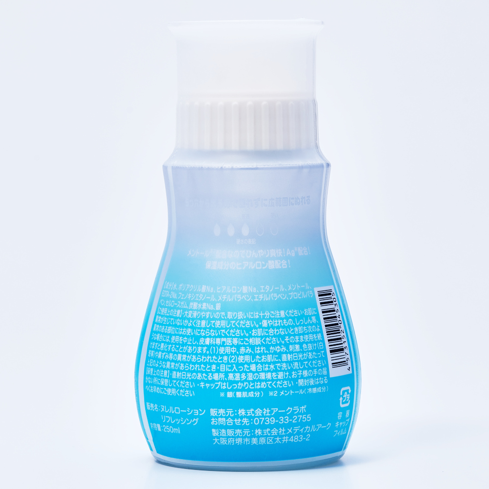 メントール配合でひんやり爽快感が楽しめる。 5つ穴から出るので広範囲に塗りやすい。 柔らかい容器なので液が出しやすい。 保湿成分のヒアルロン酸配合 整肌成分のAg配合 化粧品販売届出済@