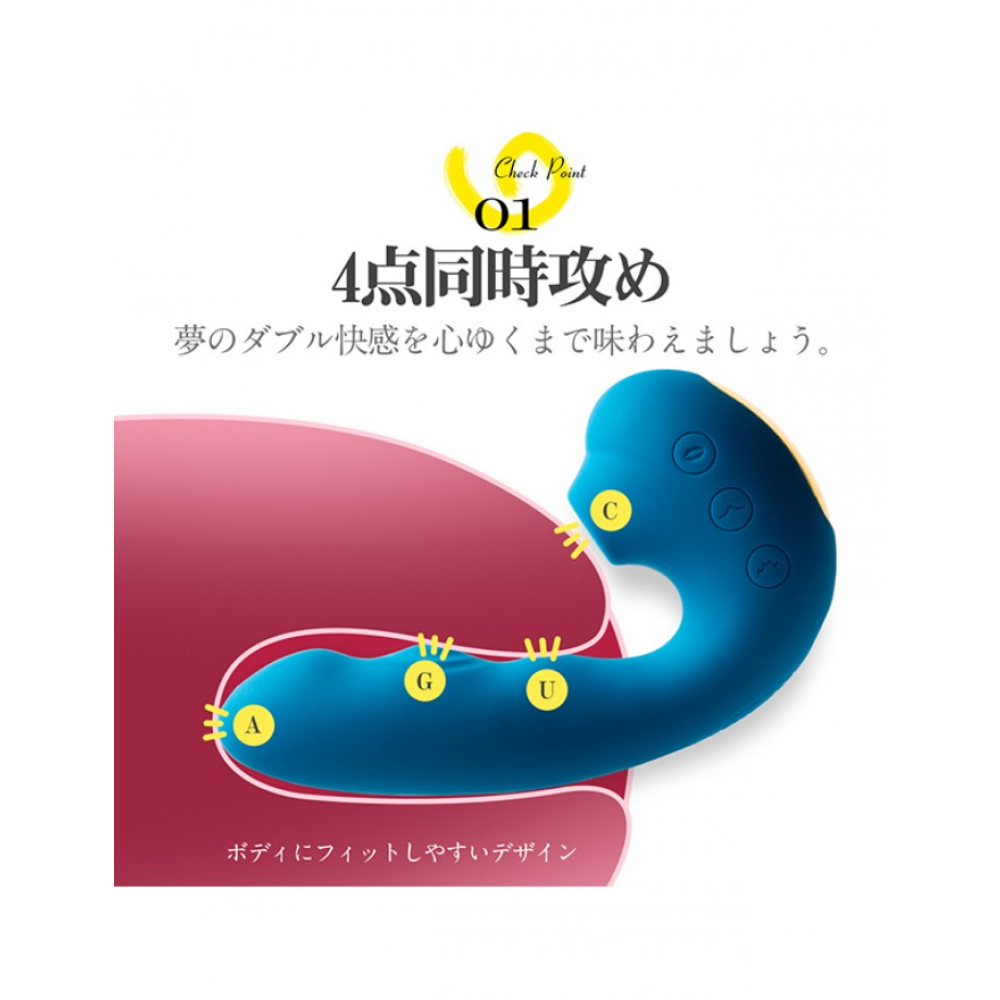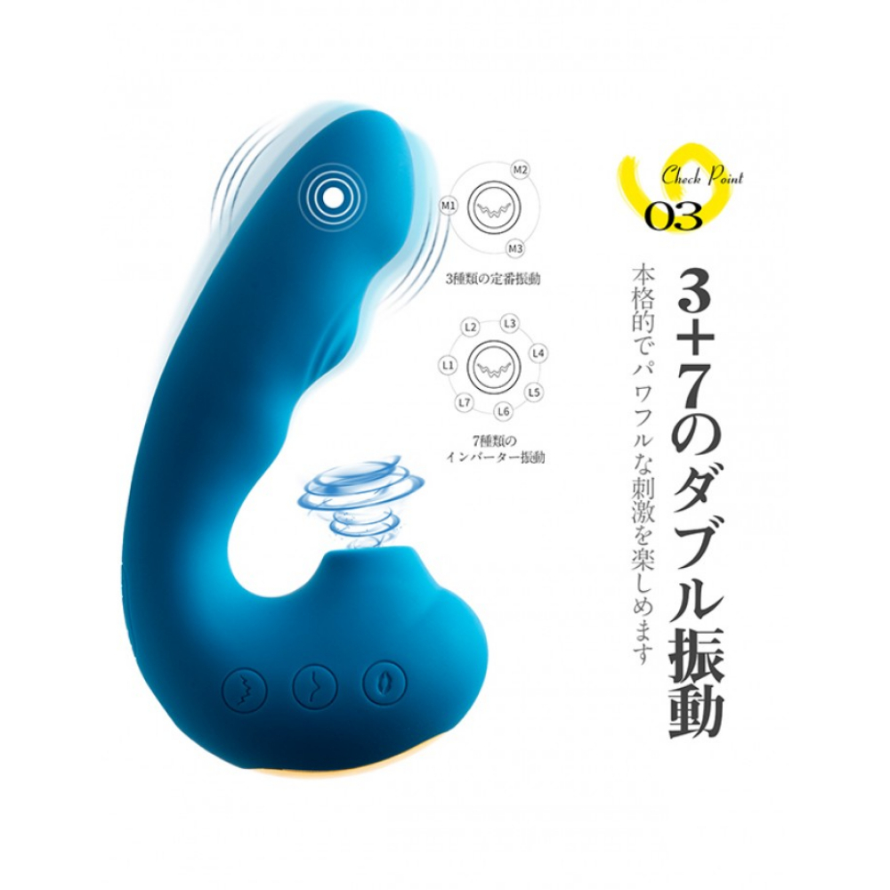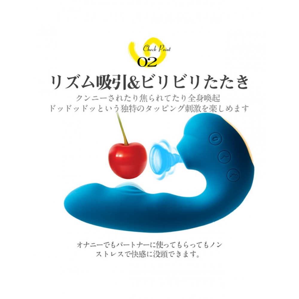 ①SNSで話題の「青い吸うやつ」として知られる製品②吸引と振動機能に加え、タッピング機能を搭載③中と外を同時に刺激する新形状の吸引バイブち●が収縮するたびに奥に深く吸い込み、抜かずに連続イキが可能