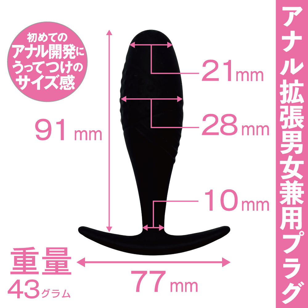 初めてのアナル開発にうってつけのサイズ感。 男女兼用アナル拡張用プラグ。拡張することでアナルプレイの幅が広がる。 初心者向けの小型サイズ。アナルを広げてプレイの幅を広げる、アナル拡張用プラグ。 最大幅28mmと、アナル拡張初心者にもおすすめしやすい小型サイズです。 長期間挿入して生活することで、徐々に拡張できます。 硬すぎないソフトシリコン製で、緩やかなカーブを描いており、スムーズに挿入できて安心。 洗浄も簡単なので清潔に使用できます。 パッケージサイズ(mm):110×71×40 重量:43g 原産国:中国