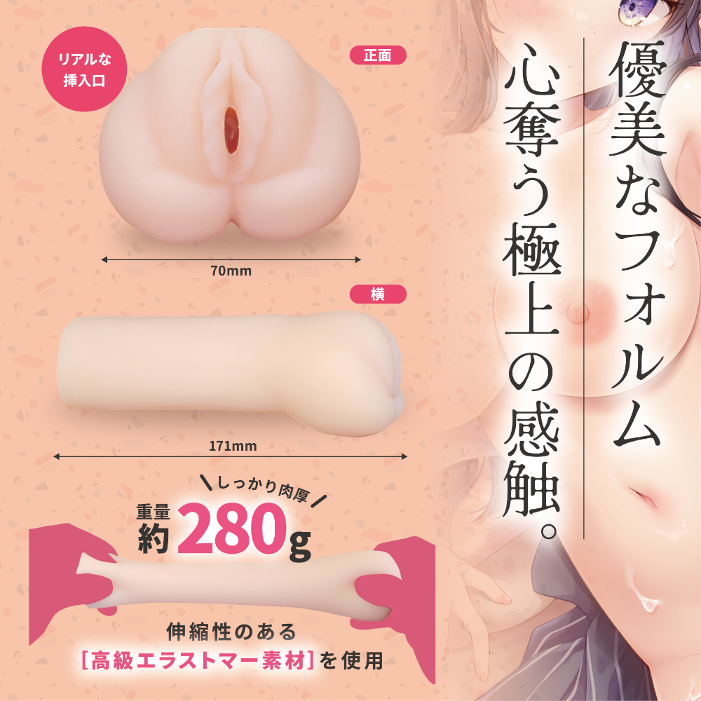 狭穴好き必見! うねりながら奥へ進む大きなヒダはストロークの度に違う刺激を体感。 最深部の入り口では大きな子宮口で搾り取られながら奥の突起で先端を刺激します。 280gの取り扱い易いボディに130mmの内部の長さは使う人を選びません。 ローション付属 パッケージサイズ(mm):H177×W128×D72 本体サイズ(mm):171×70×70 重量:本体280g/総重量358g 原産国:中国 材質:TPE /
