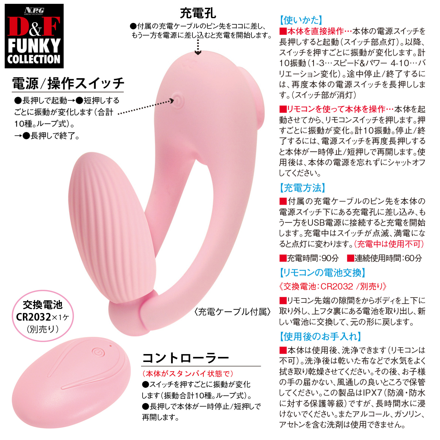本体は防水等級IPX7。使用後は洗浄可能です。(コントローラーは洗えません)