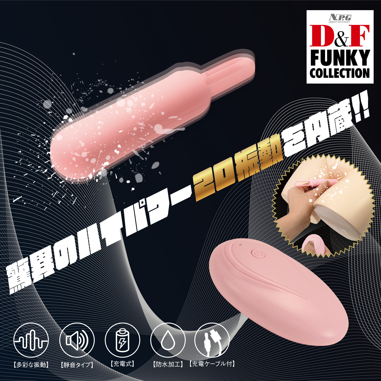 驚異の20振動(!)を内蔵したリモコンローター。ひっぱりひも付きなので