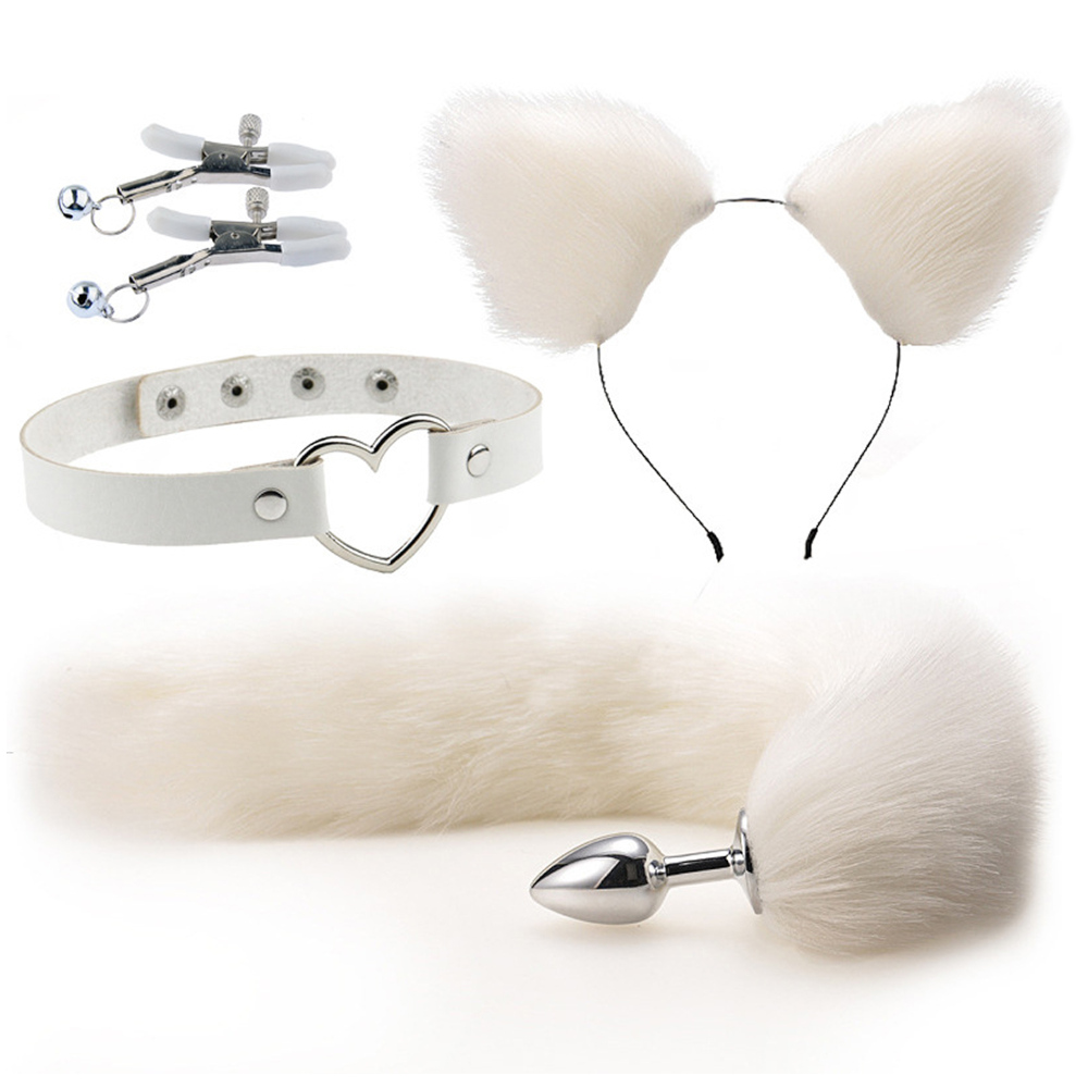 セット内容:耳カチューシャ、首輪、ニップルクリップ、しっぽアナルプラグ