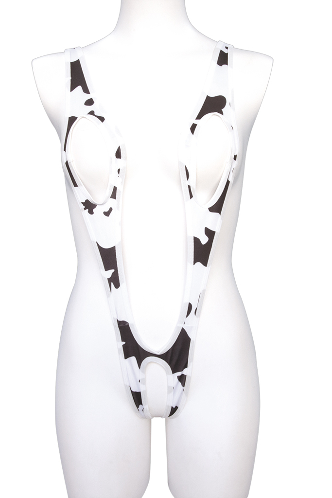 牛柄コスチュームで、野生の魅力を解き放て! あなたの中のメス牛が疼きだす セックスのためだけに作られたデザイン ボディラインを美しく魅せるV字型レオタード 尻尾付き 着丈 62cm Fサイズ 男女兼用 ポリエステル90% ポリウレタン10%