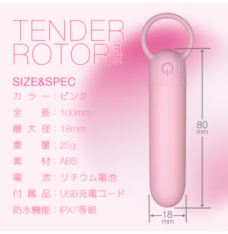 【完全防水×静音設計×お肌に優しいマット素材】 最初に使ってほしいやさしいローター。 商品サイズ(mm) 全長100x全幅18 BOXSIZE(mm) W80×H120×D40 製品材質 ABS 商品重量(g) 約62(25) 付属品 充電用USBケーブル