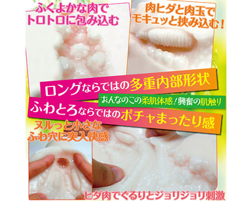 ふわぽちゃボディ?おんなのこの柔肌体感!興奮の肌触り!ふわとろ初のロングボディが新たな快感を生み出した!ふわとろならではのポチャまったり感ふくよかな肉でトロトロに包み込み、肉ヒダと肉玉でモキュッと挟み込む! 本体重量:520g。 @/