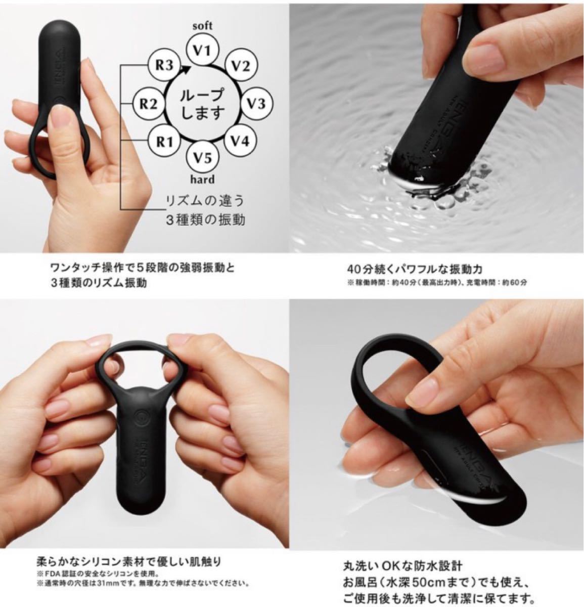 小型で軽く操作が簡単。安全な素材と確かな防水性能。そして静音性。 「TENGA SVR スマートバイブリング 」は充電式で洗って繰り返し使える高性能ペニスリングです。 愛撫用のシングルローターとしても使う事ができ、おひとりでもおふたりでもその痺れるような震動をお楽しみいただけます。充電はPC等のUSB機器から付属のUSBケーブルで行うことが出来ます。 パソコンやUSB機器をお持ちでない方は、コンセントからUSB充電が出来る、 「USB式ACアダプター」を別途お買い求めになって下さい。充電が始まると本体のランプが点灯し、充電が完了すると消灯します。 約60分の充電でおよそ60分可動させることが可能です @