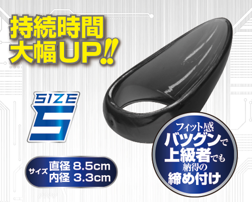 勃起力&持続時間大幅アップ! 流線系のフォルムが会陰への刺激も可能!エラストマー製だから簡単に装着でき、どんなサイズにもぴったりフィット。Sサイズは、リングの穴が狭いのでサオとタマを強力締付! 上級者でも納得の使用感です。