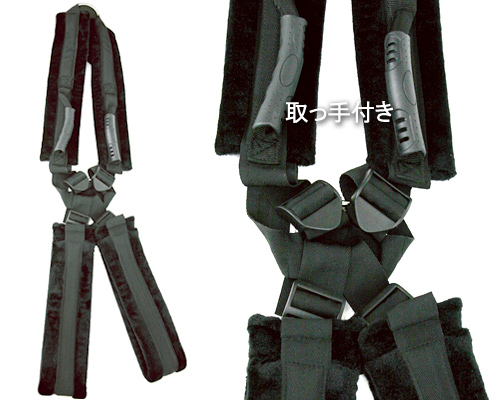 駅弁。興奮しすぎで気持ち良い…いつもとは違う拘束に大興奮!どこでも簡単駅弁プレイ!簡単駅弁サポーター!リュックのように拘束具を男性が装着し、女性の足に輪っかを通すだけで駅弁プレイが楽しめます。