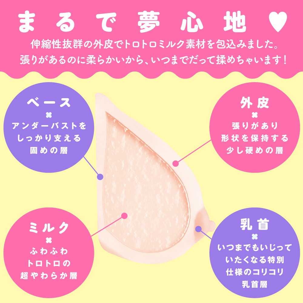 肉感たっぷりJカップ2Kg! 圧倒的な柔らかさ、人気漫画家108号氏完全監修の美麗造形おっぱい!収縮性抜群の外皮素材でトロトロなミルク素材を包み込みました。ハリがあるのに柔らかいから、いつまでだって揉めちゃいます。