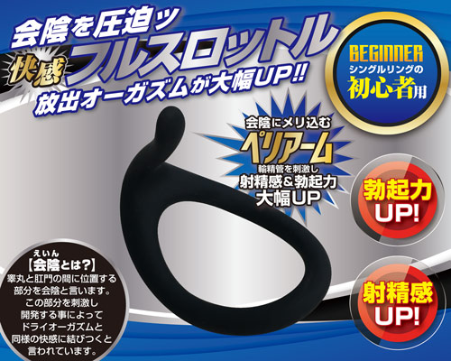 ペニス・根元を締め上げ、会陰部を圧迫!! 今まで感じたことのない刺激へと導くバイアスロットル!! 人間工学に基づいて作られた曲線型のフォルムがアナタにフィット。ペリアームをメリ込ませるように会陰に当てれば、輸精管を刺激し射精感&勃起力大幅UP!!放出オーガズムを最大限まで高め、快感フルスロットル!! 【ビギナー】 シングルリングで無理せず使える。初心者用 【リング内径】 縦幅:45mm 横幅:30mm 【会陰(えいん)とは?】 睾丸と肛門の間に位置する部分を会陰と言います。この部分を刺激し開発する事によってドライオーガズムと同様の快感に結びつくと言われています。 @