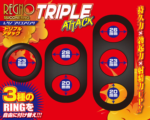 3つのリングを自由に付け替え、ポテンシャルを最大限引き出す。付け方次第で攻守ともに力を発揮!! SEXや自分磨きなどシーンを選ばず使用可能。適度な柔軟性とタイトな締め付け。ピュアシリコン素材なのでフィット感も抜群!! 持久力×勃起力×射精力UP!!もちろん早漏対策にも。 @
