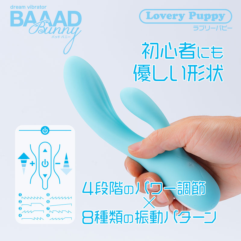 女性の好みを追求し誕生したバッドバニー・シリーズ。 可愛くてキュートなデザイン、優しい肌触りにソフトな使い心地。 女性の「欲しい」を形にしたシリーズの登場です。 このラブリーパピーはクリを大きく面で刺激するツインタイプ。 ソフトな肌触りと4段階のパワー強弱 & 8種類の振動モードで女性を虜にします。 使用後は丸洗い可能な生活防水、清潔さを保ち続けます。 USB充電式なのでパワフルな振動をお楽しみください。 初めてバイブを使用する方にも最適な一本です。 ■商品サイズ(mm) 縦235横65奥行55 ■商品重量(g) 238 ■本体サイズ(mm) 全長200mm 最大幅35mm ■本体重量(g)、内容量(ml) 164 ■付属品 USB充電ケーブル .