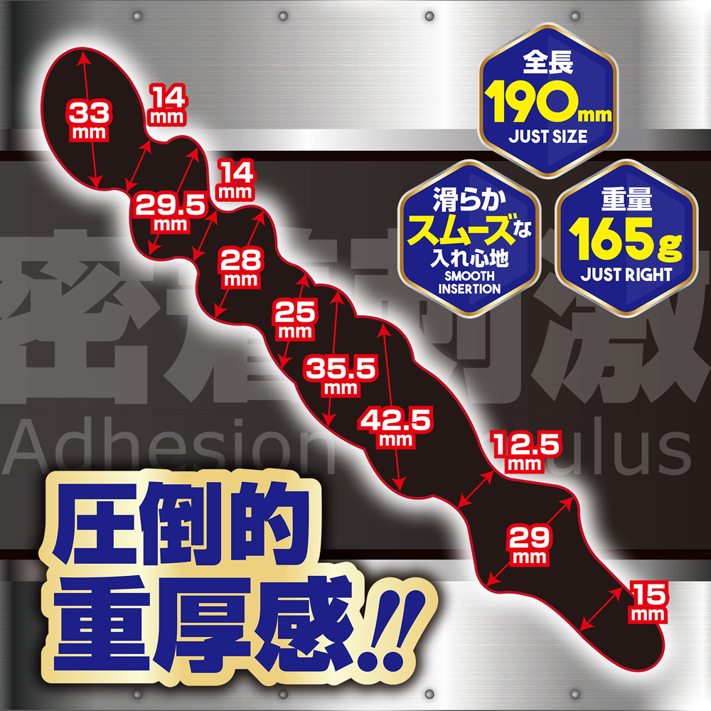 圧迫感と重量感で内部を満たす。 温めたり冷やしたり、刺激を変化させてアナル弄り。 抜群の強度と耐久性を兼ね備えたアルミニウム製プラグ。そのまま使えばひんやり滑らかで、癖になる。 両端どちらからでも挿入OKなので、気分に合わせて使えちゃう。 初心者でも上級者でも納得の使用感。安定感抜群で、激しい出し入れにも耐えられる!! スティックを奥まで挿入し、アナルを満たそう。 【Aタイプ特徴】 快感形状が、密着しながら刺激を促す .@