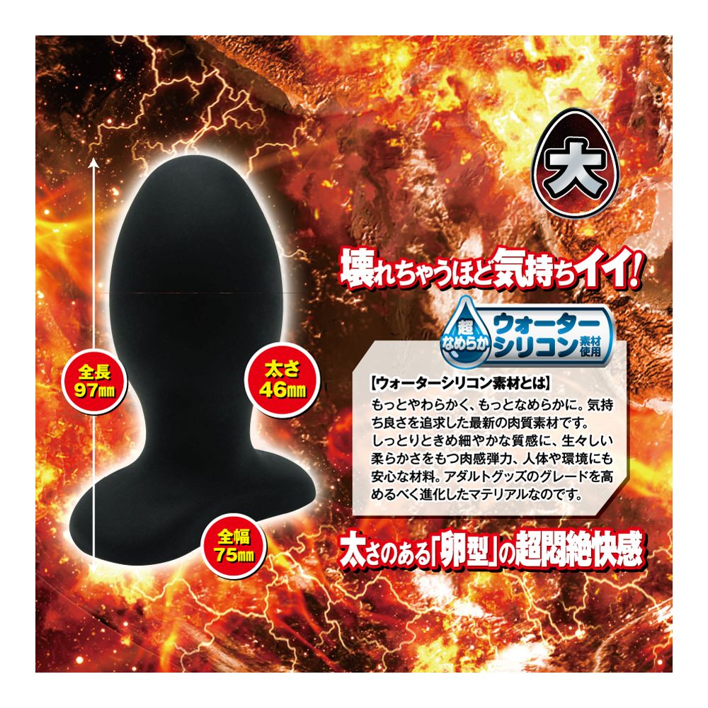 壊れちゃうほど気持ちイイ!太さのある卵型のア●ルストッパー「ア●ル破壊」!サイズは小さめなのに、気持ち良さは破壊的!その秘密は、太さのある卵型の形状!圧迫感を強めるフォルムで、ストッパーの魅力である「詰まってる感」を最大限に刺激します。 卵型が生み出す、超破壊的なし●穴悶絶快感をお楽しみください!さらに、使用素材にもこだわりました!破壊的な気持ち良さを加速させる、最新素材「ウォーターシリコン」を使用!もっとやさしく、もっとなめらかに。高級アダルトグッズに使われるシリコン素材をさらに進化させた、アダルトグッズをアップグレードする最新の肉感素材です。きめ細やかな質感、生々しい弾力、環境に優しい材料など、一歩進んだこの素材をぜひご堪能ください! 「大」は、全長97ミリ×直径46ミリのやや小さめプラグ!他では味わえない破壊的な快感が楽しめます! ■商品サイズ(mm) 縦100横80奥行50 ■商品重量(g) 158 ■本体サイズ(mm) 縦97×横75×奥行46mm ■本体重量(g)、内容量(ml) 134 .@