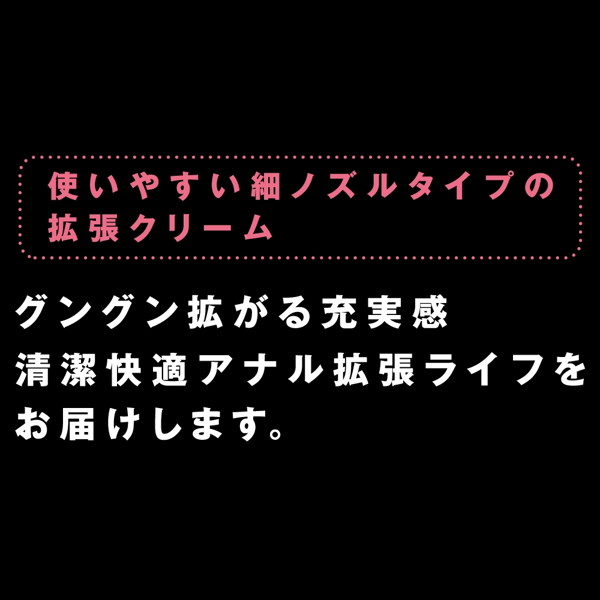 より快適なアナニーライフを楽しんでいただける一回使い切り型、清潔安心のアンプルタイプ拡張クリームです。 充填されている拡張クリームは低刺激なものとなっており敏感な部分に負担をかけません。プレイ前に使用していただくと適度にほぐれスムーズなプレイを楽しんでいただけます。 大変使いやすい細口ノズルです。 ■商品サイズ(mm) 縦123横125奥行25 ■商品重量(g) 145 ■本体サイズ(mm) 縦123横125奥行25 ■本体重量(g)、内容量(ml) 145 .@