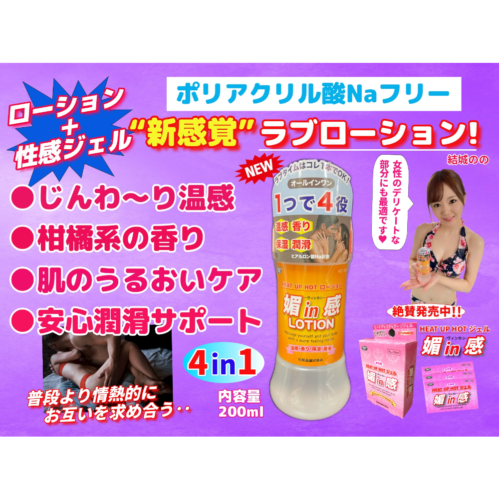 HOTな快感!ローションと性感ジェルの“新感覚”なハイブリッド型ローションが新発売!! 「温感」「香り」「保湿」「潤滑」と1つで4役の効果が期待できる独自成分を新配合。 ローションは半透明でとろ~りとしたなめらかで軽く糸引くタイプで長時間のプレイにも適してます。 柑橘系で爽やかな香りに包まれながら、じんわり温感による全身マッサージとスムーズな潤滑サポートまで、ラブタイムはこれ1本で完結できちゃうオールインワンタイプです。 女性のデリケートゾーンには適していないと言われるポリアクリル酸Naは不使用。 ヒアルロン酸Naやコラーゲンなど肌のうるおいケアと保湿にもこだわり女性にもやさしく安心してご使用頂けます。 2人の愛を深め、いっぱいお互いで感じ合えるよう200mlの大容量にしました。これからのラブタイムにマストな1本です! 本品は安心・安全な化粧品仕上げの日本製です。 【使用方法】 適量を手のひらに取りよく馴染ませ、必要な箇所に優しくマッサージしながら塗布して下さい。.@