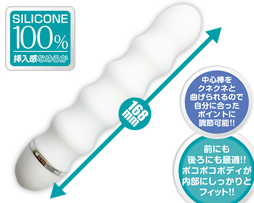 自在にクネクネ曲げられる!!挿入感がなめらかなシリコン素材のメディッシュ!!7段階のバイブレーションが快感を更に誘発!!アナルにもアソコにも最適なポコポコボディが、内部にしっかりフィット。使い勝手バツグン!!単3電池×1本付属