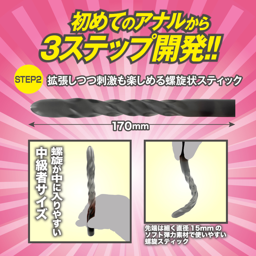 STEP2 全長170mm先端部の径13mmの拡張しつつ刺激も楽しめるらせん状スティック
