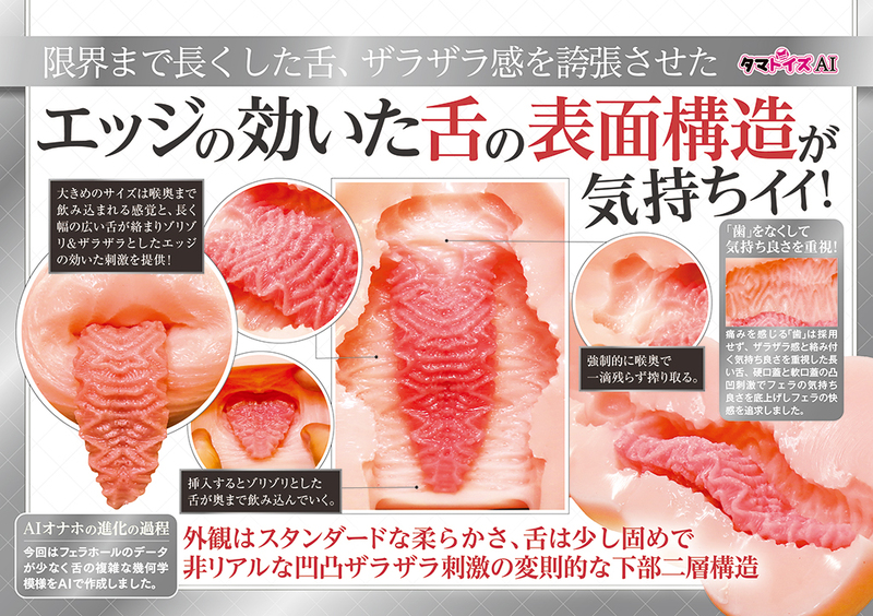 【タマトイズAI】 AIに数カ月の間、様々なオナホールを学習させて作った理想的なオナホール 外観はスタンダードな柔らかさ、舌は少し固めで非リアルな凹凸ザラザラ刺激の変則的な下部二層構造 日本製 国内自社工場製 非貫通型オナホール ローション付き 弾力のあるフレキシブルスキン使用 高弾力・高伸縮素材 匂い控えめ 全長170mm 重量550g