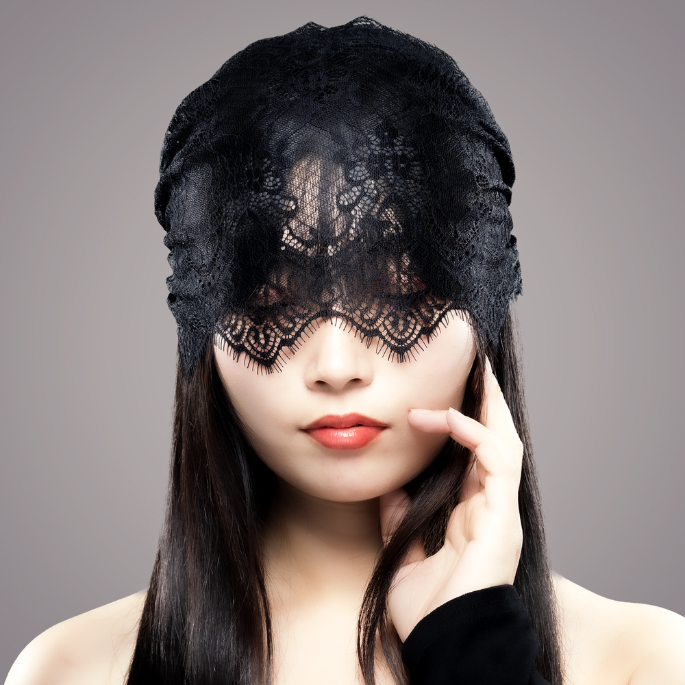 日本国内の工場で縫製され、幅広なアイラッシュレースを使用したベール型のフェイスマスクです。調整のしやすいリボン付きで、視界を完全に遮る事なく様々なプレイにお使い頂けます。