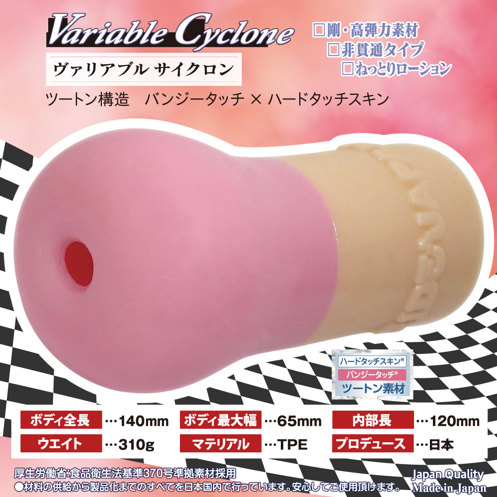 ヴァリアブルアタック:革新の触感テクノロジー ツートン素材が魅せる感覚のダイナミズム!二つの世界を一つで感じるデュアルフィーリング。 ”柔”から”硬”に変わる瞬間、波形状から渦巻へ変わる瞬間を素材と形状のヴァリアブルを感じて下さい。 形状変化が魅せる誘惑からの激情、硬度変化がおりなす心躍るアメージング体感。 未知の快感を探求!感触の変遷-へんせん-を是非お試し下さい。 パッケージサイズ(mm):H190×W120×D75 本体サイズ(mm):140×65×65 重量:本体310g/総重量400g 原産国:日本 材質:TPE @/