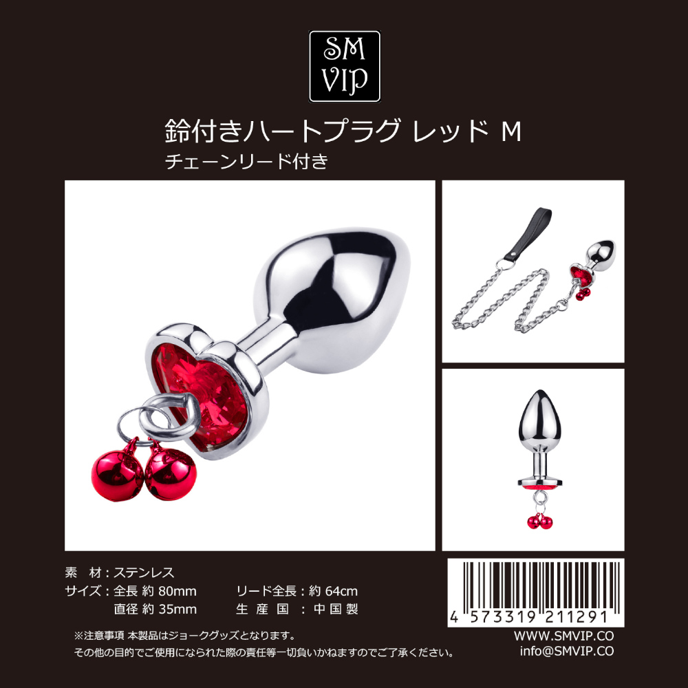 鈴付きハートプラグ レッド M TOY-8109119