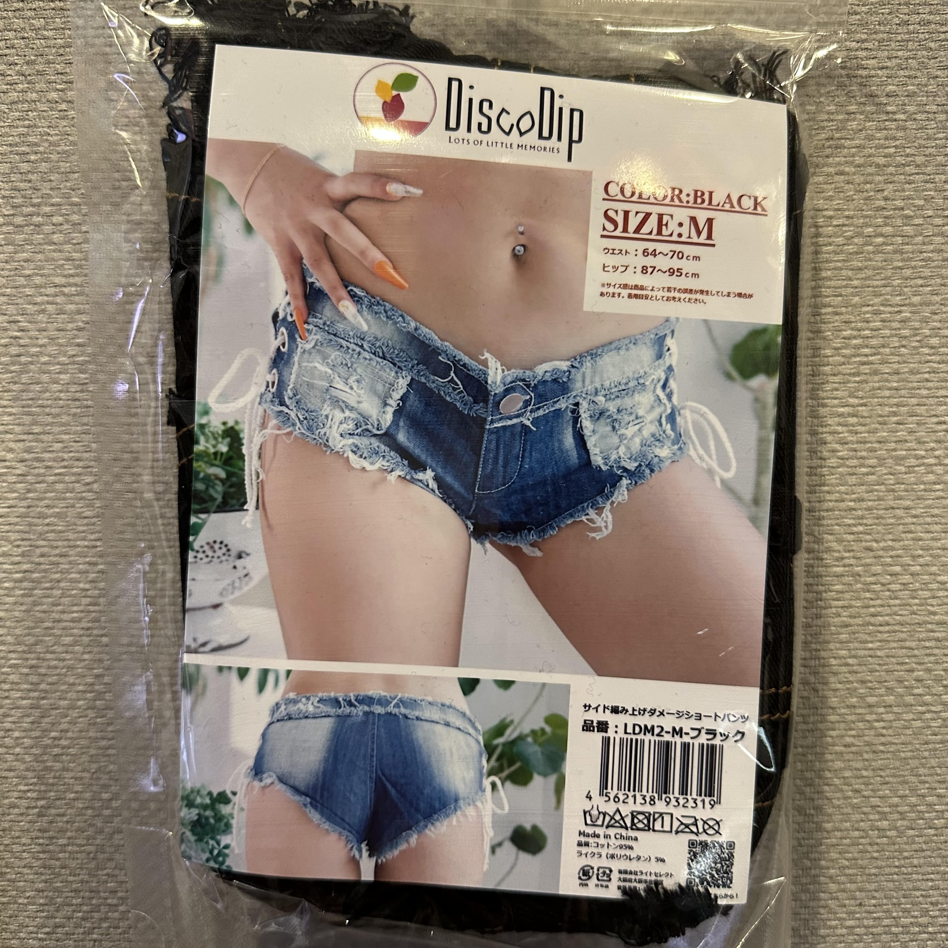 サイド編み上げダメージショートパンツブラック LDM2-M-ブラック